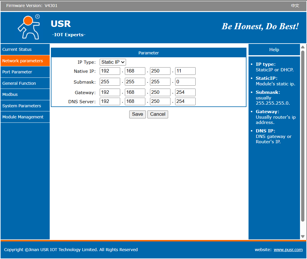 Toda la configuración se ha determinado gracias al manual de configuración: Manual USR-DR134.pdf y al datasheet: Datasheet USR-DR134.pdf