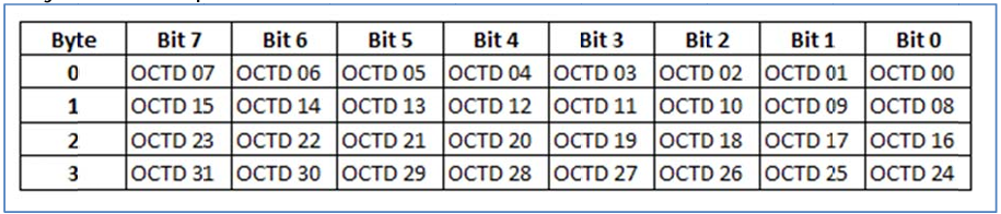 En esta tabla se detallan la asignación de bits de los bits OCTD (Optional Communication Transmission Data)⬇️